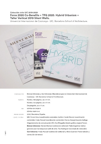 Colección ciclo UIC 2019-2020 Esta publicación tripartita indaga en tres momentos en la carrera de arquitectura en la UIC: TFG (Proyecto