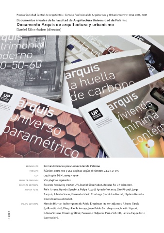 Documentos anuales de la Facultad de Arquitectura Universidad de Palermo Los documentos de arquitectura Arquis, son una serie de publicaciones editadas por la Facultad de Arqui-