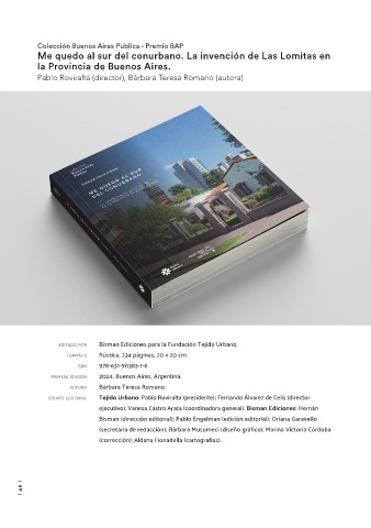 Me quedo al sur del conurbano. La invención de Las Lomitas en por la Fundación Tejido Urbano. Es resultado de la tesis doctoral de Bárbara Teresa Romano, y reconstruye el
